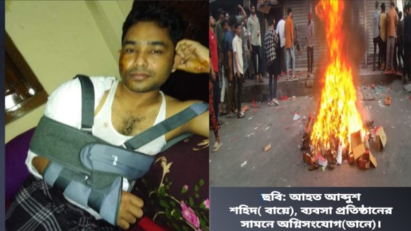 হামলায় আহতরা হলেন শহিদ ট্রেডার্সের সত্তাধিকারী আব্দুশ শহিদ, দোকানের কর্মচারি গোবিন্দ দাস, ইকবাল হোসাইন ও রেজাউল করিম। আহতদের বিভিন্ন হাসপাতালে ভর্তি করা হয়েছে।